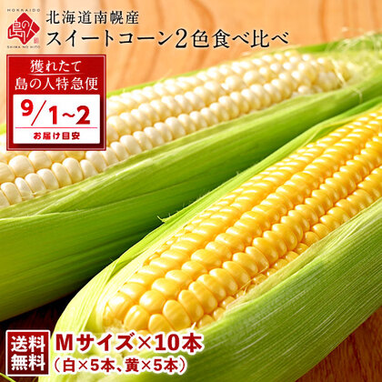 【9月1日~2日お届け】とうもろこし 北海道 南幌町産 2色食べ比べセット Mサイズ各5本 あまいんです ピュアホワイト【送料無料】【産地直送】