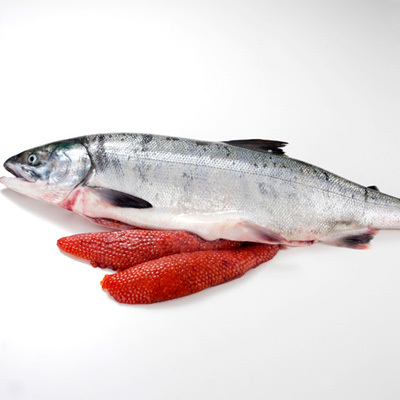 旬の秋鮭を丸ごと一本お届け! 脂のりのよい引き締まった身に生のイクラ。