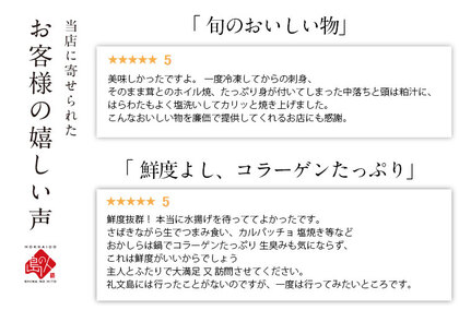 生鮮品の為、水揚げの状況次第ではお届け日の遅延・キャンセル対応が生じる場合がございます。