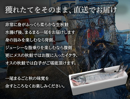 旬の秋鮭を丸ごと一本お届け! 引き締まった身と脂のり。